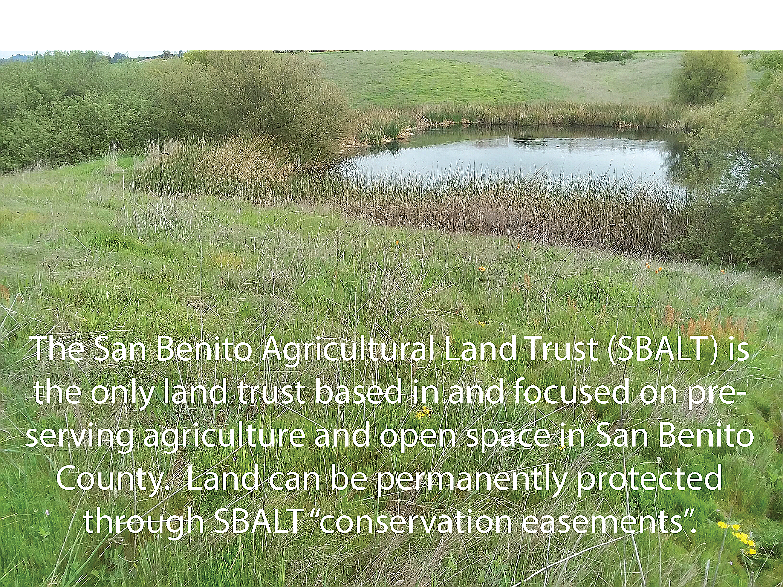 ☞ The mission of the San Benito Agricultural Land Trust (SBALT) is to conserve regionally significant lands that sustain productive agriculture, preserve open space and maintain the rural character of the county.
